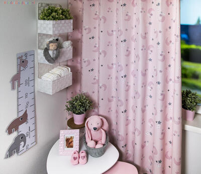 Wat een schitterende kwaliteit gordijnstof! Zien is geloven, zo mooi soepel geweven én maar liefst 280 cm breed! Dat betekent dat het babykamer gordijn meestal naadloos kan worden gemaakt. De is print is gedrukt op een heel fijn geribde stof, wat een vlotte & sportieve uitstraling geeft. Het sterretjes & maantjes patroon is leverbaar in 3 verschillende ondergrondkleuren. Eigentijds blauw- grijs voor de jongenskamer, pastel roze - grijs voor meisjes slaapkamer en camel – grijs voor als je liever geheim wilt houden welk lief kleintje er komt slapen. De maan is hier 7 cm groot en samen met de sterren ernaast 9 cm breed. Door het rustig herhalende patroon kan je dit gordijn uitstekend tot de grond laten confectioneren. Wanneer je graag extra verduistering wenst dan optie voeren aanvinken in het bestelproces. Kortom, deze fraaie stofserie is een aanwinst binnen onze enorme collectie!