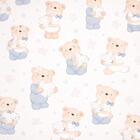 Het Babybear motief bestaat uit schattige teddybeertjes van circa 22 cm hoog, elk met een eigen houding en expressie. De beertjes houden kleine hartjes vast en worden omringd door sterretjes en wolkachtige vormen. Dit zorgt voor een speels patroon dat niet overheerst, maar juist warmte en geborgenheid uitstraalt.