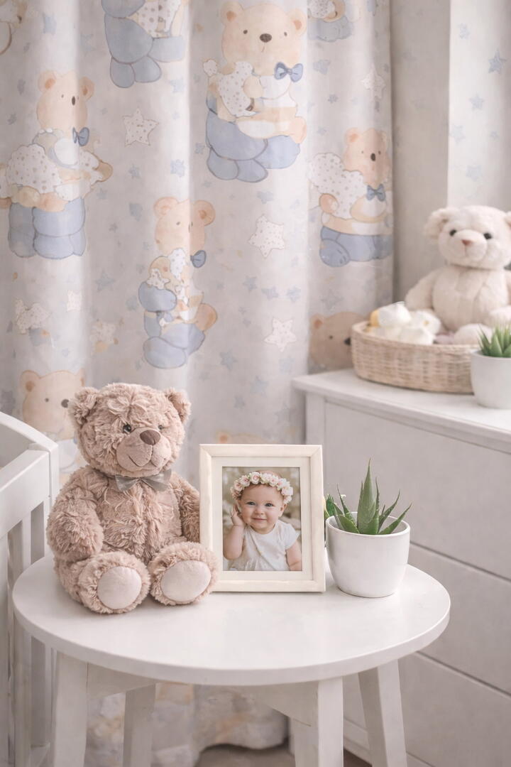 Babybear kindergordijn – zacht, lief en tijdloos voor elke babykamer
