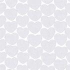 Het hartjesmotief is gedrukt op een warm witte ondergrond en bestaat uit gelijkmatig herhaalde harten met een subtiele gestikte omlijning. Deze omlijning geeft het patroon extra diepte en laat de structuur van de stof mooi zichtbaar blijven. De fijne rib in het weefsel zorgt voor een levendig oppervlak zonder dat het druk oogt.