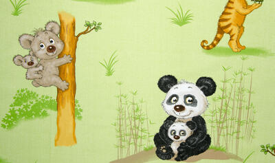Een kindergordijn om te koesteren, wat een pláátje! De bosdieren lijken door de realistische aquareltechniek, haast handmatig op het gordijn aangebracht. Een verfijnde penseeltechniek met een zacht kleurgebruik. De dieren met hun jongen kijken je vrolijk en guitig aan en hebben zin in het leven, dat straalt er vanaf! Het patroon is royaal, waardoor je dit gordijn ook prima tot de grond kunt laten maken. De panda is bijvoorbeeld al 25 cm groot. De print is aan de voorzijde gedrukt op semi verduisterende stof waarmee een kinderkamer flink donkel zal worden. Voor 100 verduistering kun je optie extra voeren aanvinken in het bestelproces.