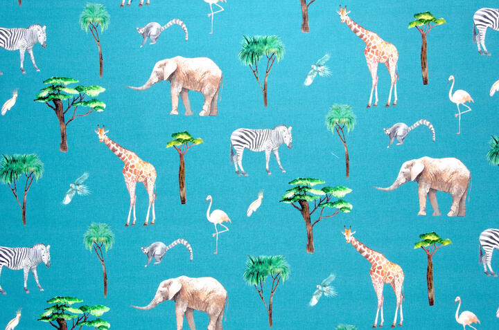 Deze gordijnstof met de naam On Safari is gemaakt van de beste materialen waardoor het gordijn mooi in de plooi valt.