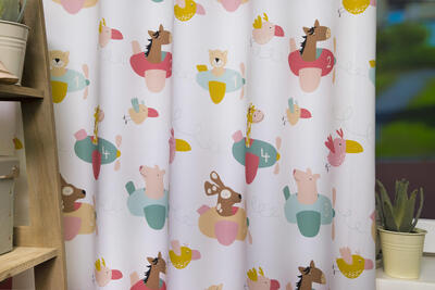 Dit superschattige kindergordijn is gewoon gemaakt voor in een babykamer. Op elk vliegtuigje staat een nummer en zit een lief beestje in. Denk hierbij aan een paard, beer en hond. Je kan dus ook nog eens je zoon of dochter laten tellen. Het materiaal dat gebruikt is voor dit kindergordijn is zowel polyester (70%) als katoen (30%). De stofbreedte van dit kindergordijn is 140 cm. Je hebt een heleboel verschillende keuzes die jezelf mag maken. Denk hierbij aan ophangsysteem of plooien. Zoals je ziet kun je uit een heleboel dingen kiezen. Ook kun je kiezen om gelijk je kindergordijn te laten verduisteren zodat je gelijk in 1 keer klaar bent. Laat het allemaal weten op ons bestelformulier. En heb je een vraag. Mail of bel dan en we helpen je graag. Hou jij ook van vliegtuigjes?