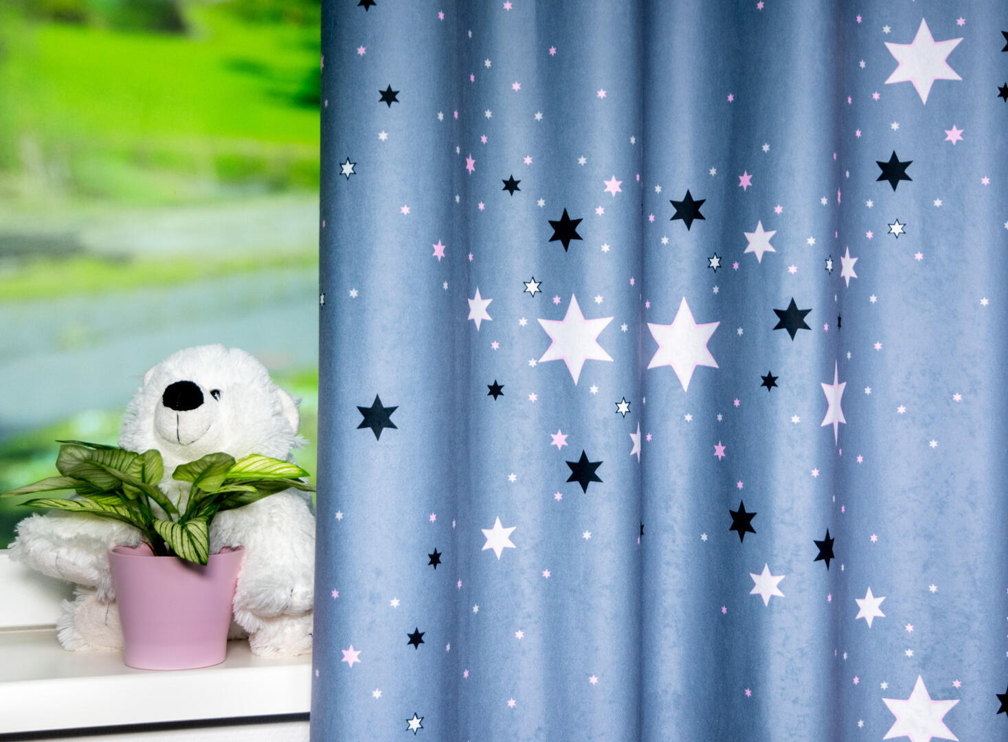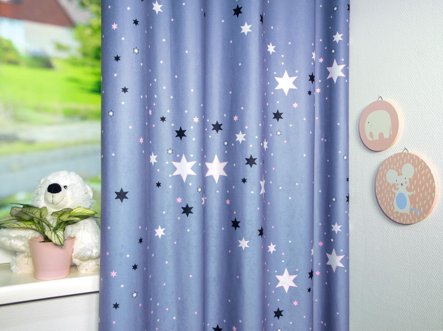De Celestial Stars is gemaakt van fluweelzachte velvet stof, waardoor het niet alleen prachtig oogt, maar ook heerlijk aanvoelt. Met zijn succesvolle kleurstellingen zal dit gordijn een echte blikvanger zijn in de kinderkamer. Kies uit vier kleurrijke combinaties: marineblauw met lichtblauwe en witte sterren, grijs met lichtgrijze en zwarte sterren, ecru met paarsvioletkleurige sterren en antraciet met paarsvioletkleurige sterren. Deze kleuren zullen de ruimte laten stralen!