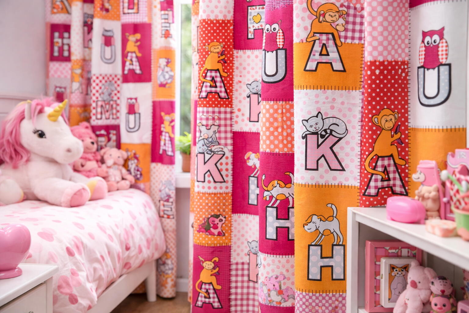 Letterblocks is een duurzame gordijnstof van hoge kwaliteit, geschikt voor dagelijks gebruik in een kinderkamer.