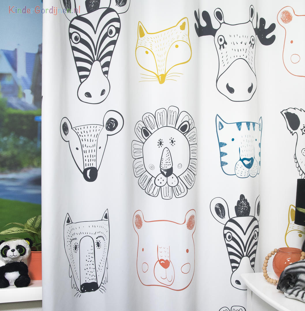 Deze gordijnstof met de naam Animal Faces is gemaakt van de beste materialen waardoor het gordijn mooi in de plooi valt.