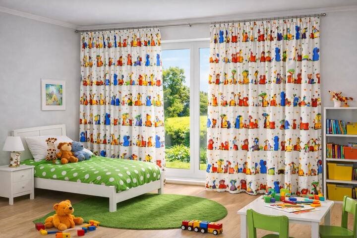 Animals in a Row is een patroon dat zowel bij babykamers als bij peuter- en kinderkamers past. Door de vriendelijke dieren, zachte kleuren en rustige herhaling ontstaat een prettige sfeer die goed combineert met witte meubels, houttinten en gekleurde accessoires. Het gordijn sluit mooi aan bij zowel jongens- als meisjeskamers.