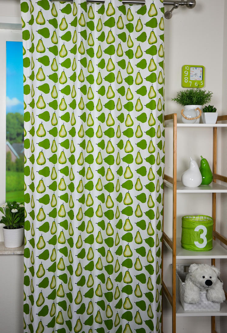 Een RETRO gordijn van appeltjes of perenstof! De frisse kleur ademt direct een warme sfeer in de kamer. De ondergrond heeft een zandkleurig linneneffect en bij de appeltjes stof en een warm witte ondergrond bij de perenstof, kleuren die bijdragen aan die gave vintagelook. De appel en peren print zijn gedrukt op de voorzijde, ze zijn 10 cm in doorsnede.