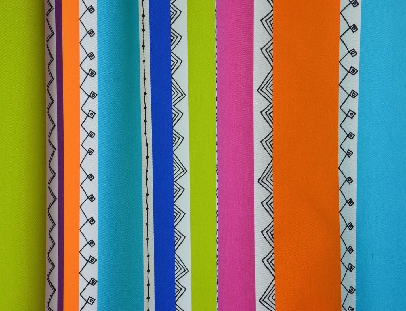 Deze gordijnstof met de naam Aztec Stripe is gemaakt van de beste materialen waardoor het gordijn mooi in de plooi valt.