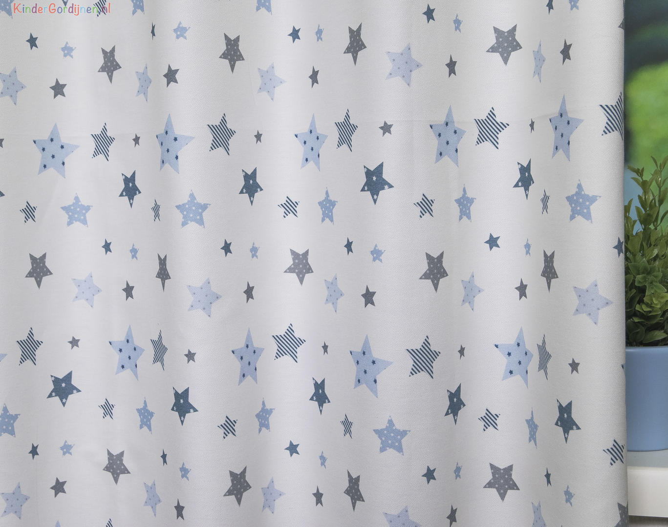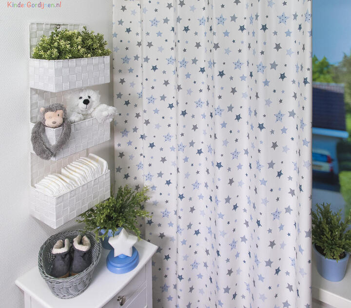 Wat een schitterende kwaliteit gordijnstof! Zien is geloven, zo mooi soepel geweven én maar liefst 280 cm breed! Dat betekent dat het babykamer gordijn meestal naadloos kan worden gemaakt. De is print is gedrukt op een heel fijn geribde stof, wat een vlotte & sportieve uitstraling geeft. Het sterretjes patroon is op de voorzijde gedrukt op de warm witte ondergrond en leverbaar in 3 verschillende kleuren. Blauw- grijs voor de jongenskamer, pastel roze - grijs voor meisjes slaapkamer en camel - gijs voor als je liever geheim wilt houden welk lief kleintje er komt slapen. Combineren kan met een verduisterend rolgordijn uit onze collectie. Of optie voeren aanvinken in het bestelproces wanneer je extra verduistering wenst. Kortom, deze fraaie stofserie is een aanwinst binnen onze enorme collectie!
