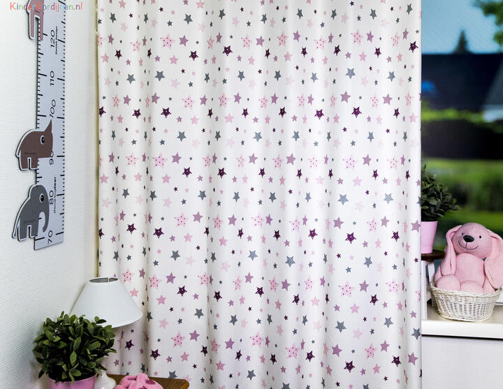 Wat een schitterende kwaliteit gordijnstof! Zien is geloven, zo mooi soepel geweven én maar liefst 280 cm breed! Dat betekent dat het babykamer gordijn meestal naadloos kan worden gemaakt. De is print is gedrukt op een heel fijn geribde stof, wat een vlotte & sportieve uitstraling geeft. Het sterretjes patroon is op de voorzijde gedrukt op de warm witte ondergrond en leverbaar in 3 verschillende kleuren. Blauw- grijs voor de jongenskamer, pastel roze - grijs voor meisjes slaapkamer en camel - gijs voor als je liever geheim wilt houden welk lief kleintje er komt slapen. Combineren kan met een verduisterend rolgordijn uit onze collectie. Of optie voeren aanvinken in het bestelproces wanneer je extra verduistering wenst. Kortom, deze fraaie stofserie is een aanwinst binnen onze enorme collectie!