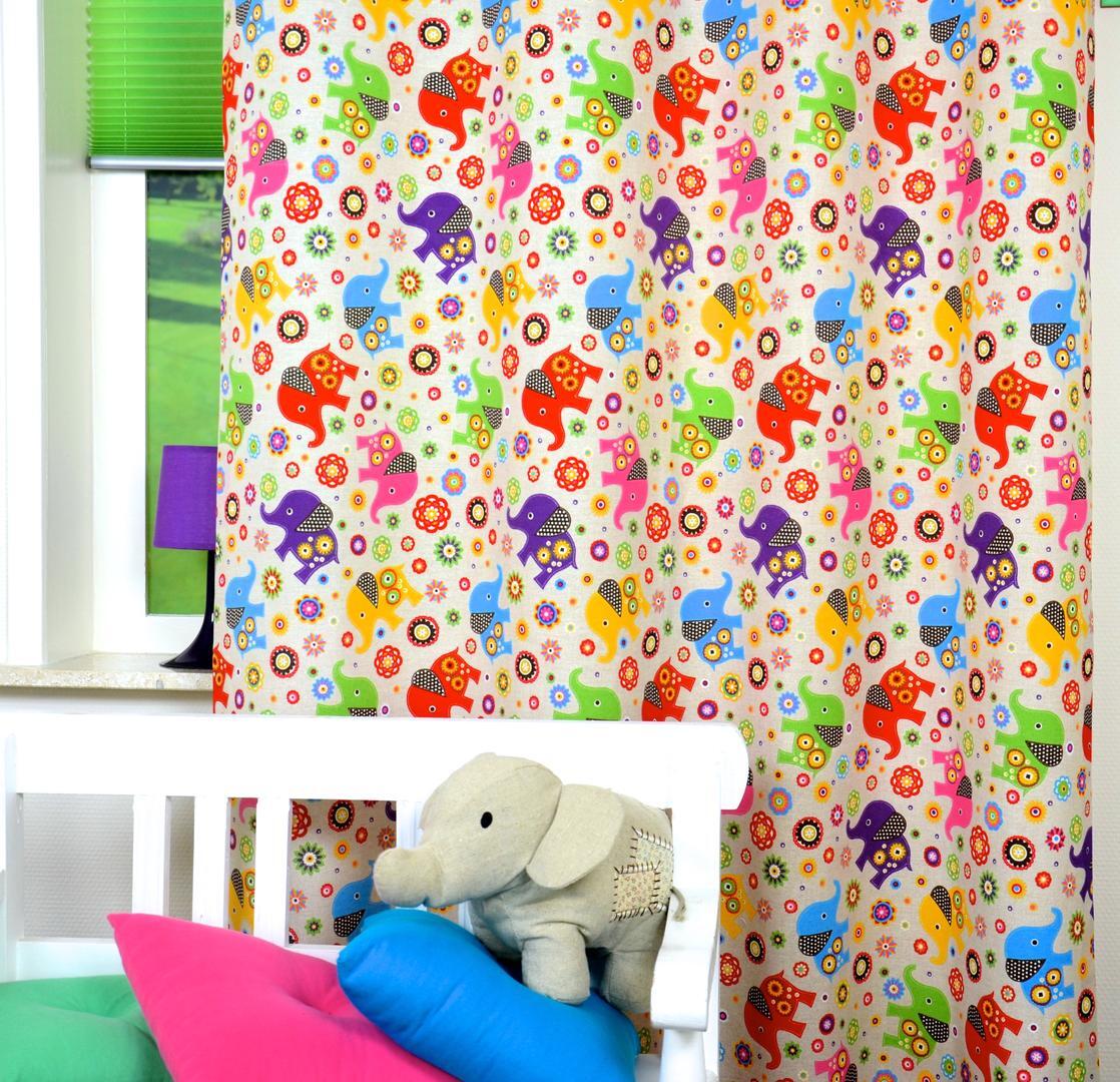 Dit decoratieve kindergordijn moet je eigenlijk in het écht zien! De nostalgische olifantjes zijn gedrukt op heel licht geribbelde stof. De ondergrond heeft een fraaie, warme kleur. Dat geeft extra gezelligheid aan de slaapkamer. De ‘fantjes’ zijn 10 cm groot en kijken lieflijk naar je wanneer jij speelt of naar dromenland gaat. Desgewenst verduisterend voeren.