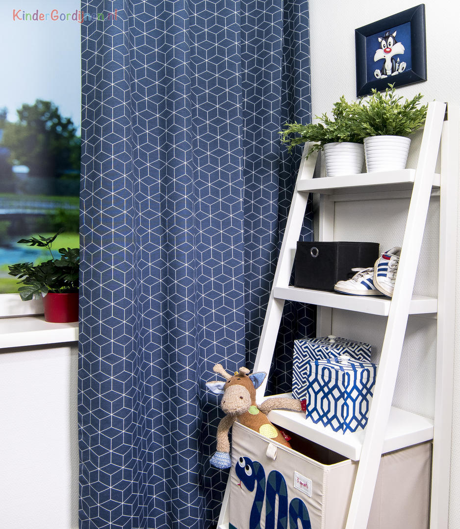 Geoblock Kindergordijn, dat is de naam van dit mooie gordijn. Het is een kindergordijn met allemaal vierkantjes (cubes) en het lijkt in de eeuwigheid door te gaan. Het kindergordijn is gemaakt van 100% katoen en is leverbaar in drie bijzondere kleuren. Dit kindergordijn kun je laten verduisteren zodat je in één keer klaar bent. Je kind kan nu heerlijk slapen in een donkere kamer. Maar als je het kindergordijn eerst wil zien en voelen dan bestel je een knipstaal en dan kun je het met eigen ogen zien. Dit is een tip van Jelmer! Hou jij ook zo van die wiskundige figuren?