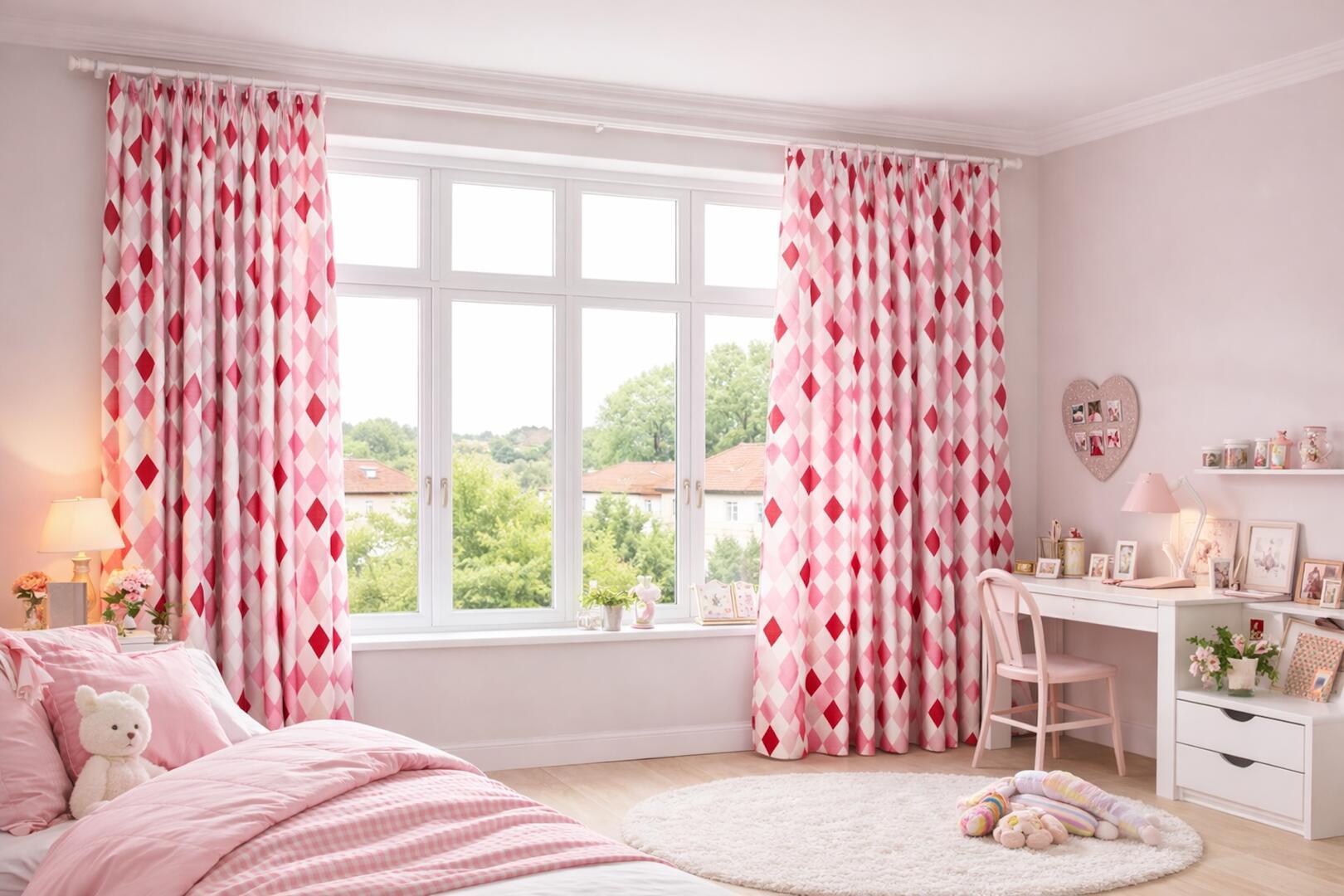 Breng sfeer, kleur en karakter in de kamer met deze prachtige ruitgordijnen. Het verfijnde ruitmotief zorgt voor een speelse uitstraling zonder druk te worden – perfect voor een kinder- of speelkamer, maar ook verrassend stijlvol in een moderne ruimte.