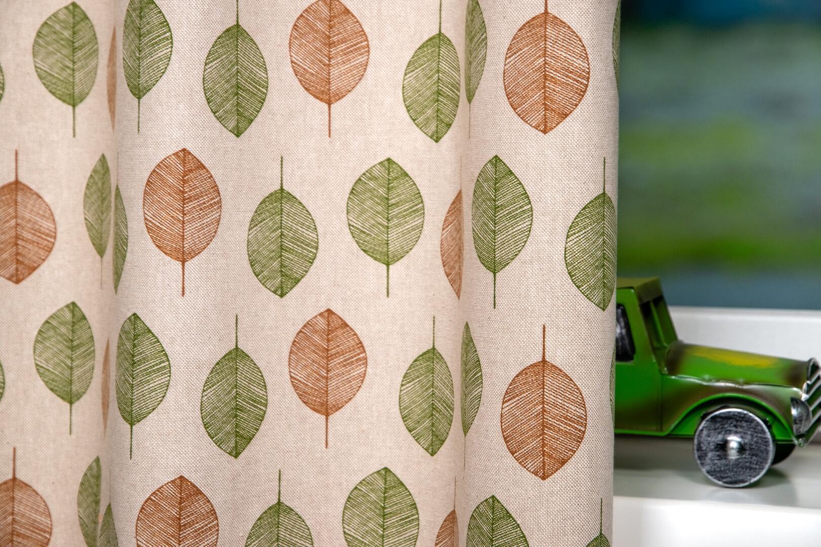 De Betula is een prachtig overgordijn, met zijn frisse bladmotief op een canvaskleurige stof. De gordijstof is beschikbaar in twee kleurcombinaties - het levendige Spring met twee tinten groen en het warme Autumn met groen en bruin blad - past dit gordijn perfect in kinderkamers, woonkamers, woonkeukens en slaapkamers. Voor extra functionaliteit en comfort bieden we de optie om voering toe te voegen.