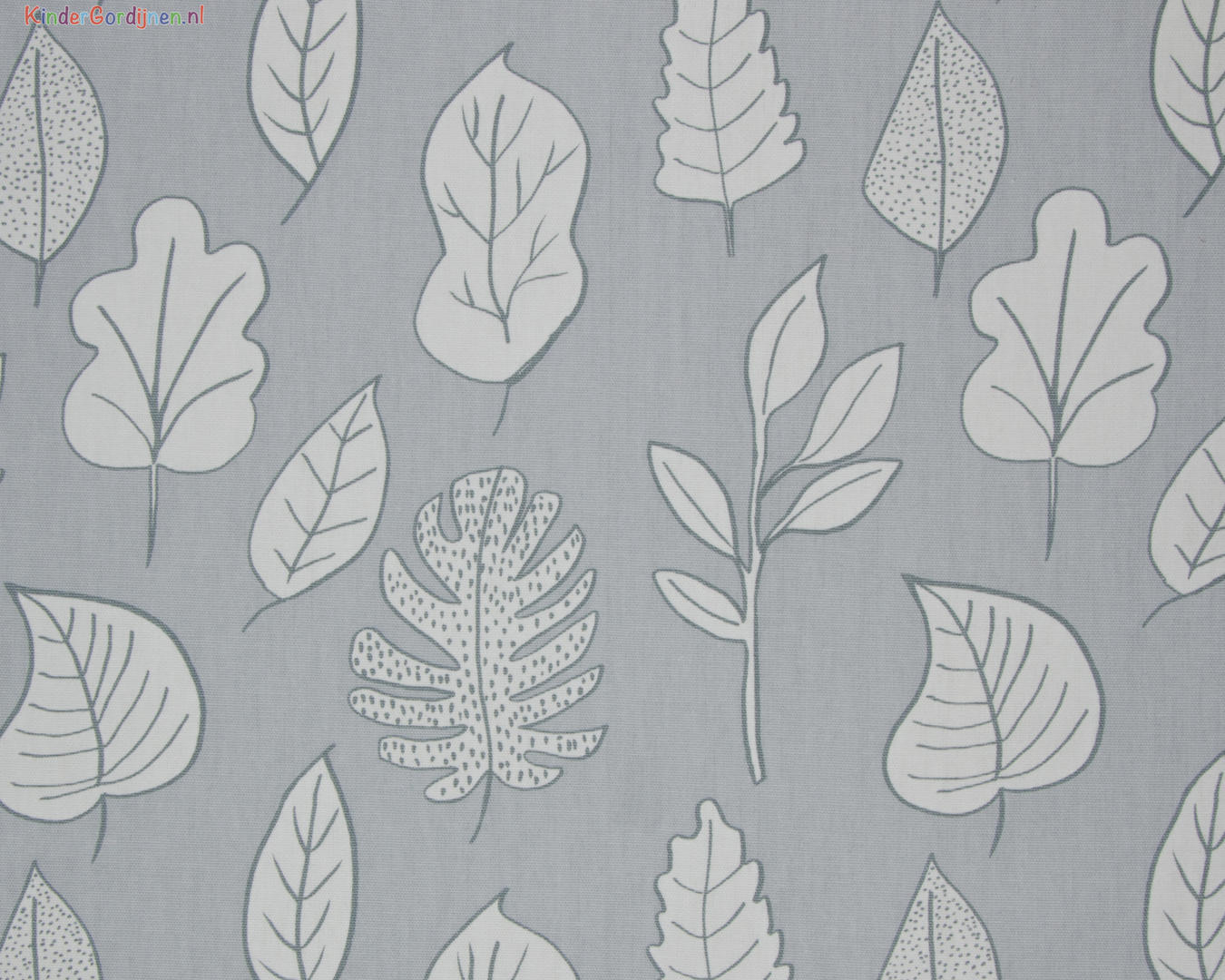 Rustig gordijn voor de kinderkamer met een print van bladeren.