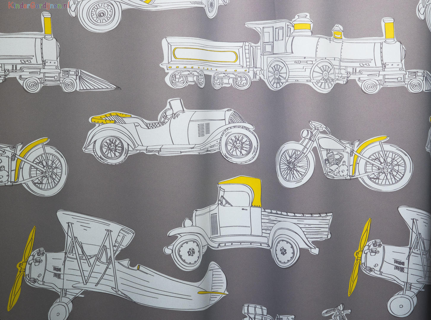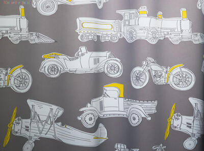Met zijn levendige en kleurrijke ontwerp brengt dit gordijn klassieke auto's, motoren, vliegtuigen, vrachtwagens en stoomlocomotieven tot leven. Je kind zal betoverd worden door de gedetailleerde afbeeldingen van deze nostalgische voertuigen die het gordijn versieren.