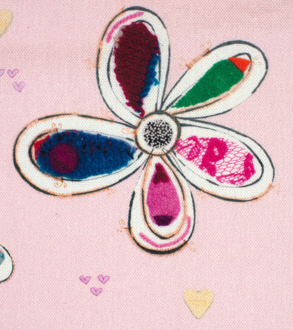 Een súper schattig bloemetjes voor de meisjeskamer, ontworpen door Hanneke de Jager. Deze beeldend kunstenares is schrijver en tevens illustrator van een aantal bijzonder leuke kinderboeken. Zij omschrijft haar stijl als: “Fris, kleurrijk, levendig, speels en zonnig.” Door gebruik van verschillende materialen zoals stofjes van de markt, knopen en gebreide truien, geeft zij haar illustraties iets unieks. In het patroon zie je namelijk de weergave van die leuke details van de verschillende texturen. Zo heeft de ondergrond een haast realistisch aaibaar brei-effect! Dat geeft direct een véél knusser effect bij harde materialen (b.v. laminaat/ gestucte wanden)