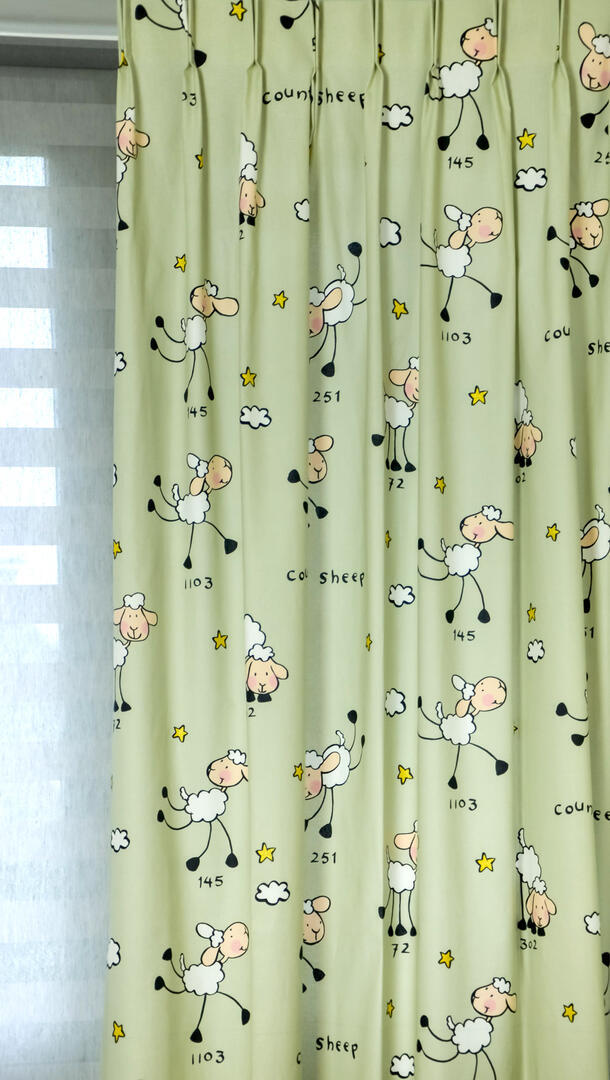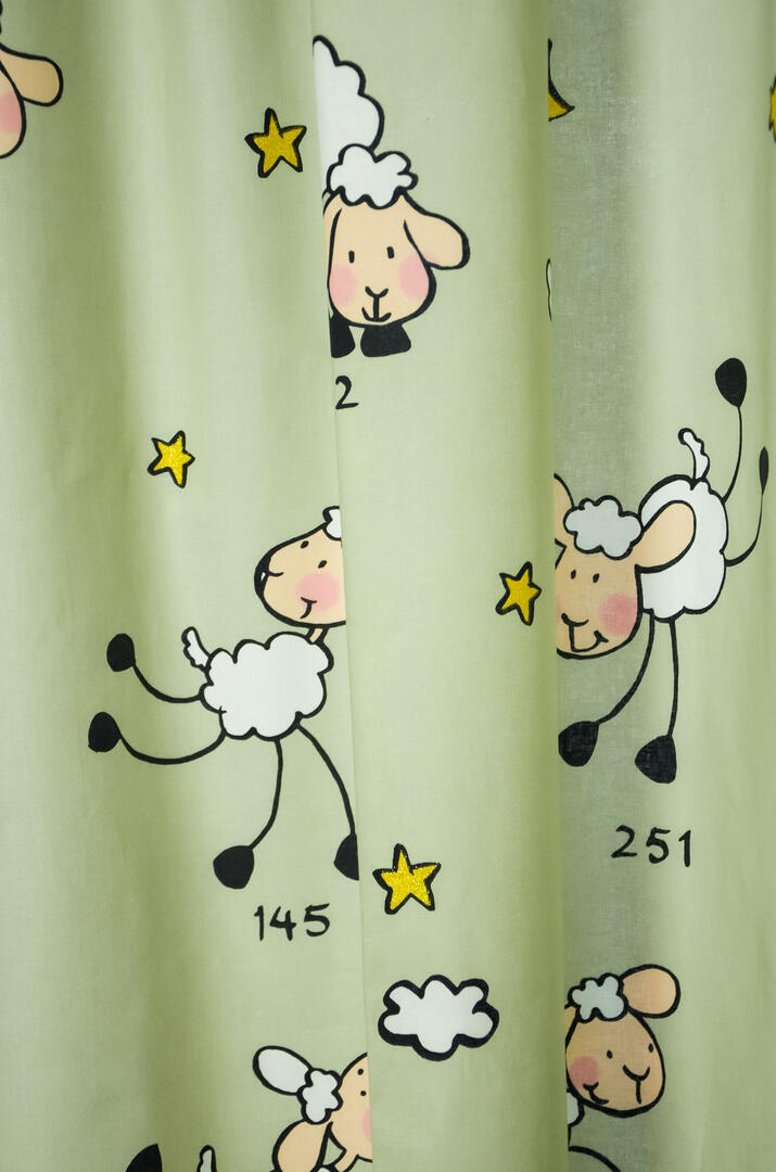 Lekker wegdommelen voordat alle schaapjes zijn geteld,1 schaap, 2 schapen, 3 schapen.... Met dit lieve en vrolijke kindergordijn valt elk kind als een blok in slaap. Doen ze dit niet dan kunnen ze heerlijk de lieve schaapjes gaan tellen op het gordijn. Dit kindergordijn is gemaakt van 100% katoen en valt mooi soepel zoals je kunt zien op de foto. Het is een mooie zachte kleur groen waar de witte schaapjes op rondrennen.