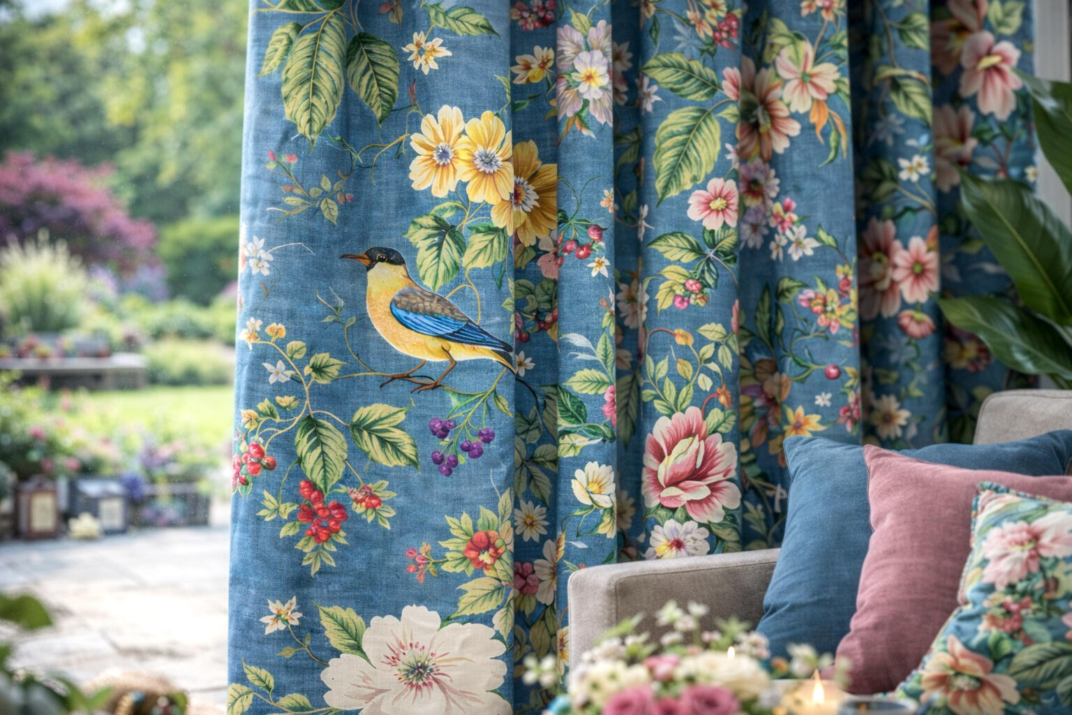 Het verduisterende kindergordijn Fruidbird is de prachtige toevoeging aan de slaapkamer van jouw kind! Op het satijnzachte stof prijken prachtige planten, bloemen, fruitplanten zoals frambozen en blauwe bessen, en diverse vogels. De semi-verduisterende eigenschap van de stof zorgt ervoor dat het al aanzienlijk licht tegenhoudt, en voor nog meer verduistering kun je een extra voering toevoegen tijdens het bestelproces. Met de voering blijft in de winter de kou buiten en houdt het in de zomer de warmte buiten, zodat jouw kind heerlijk kan slapen en fris ontwaakt. Bovendien werkt de voering geluidsisolerend en beschermt het tegen verkleuring door zonlicht. Wil je eerst de stof zien en voelen? Bestel dan een knipstaal om de textuur en kleur te beoordelen. Staaltjes worden doorgaans dezelfde dag nog verzonden. Voor vragen sta ik altijd voor je klaar om te helpen!