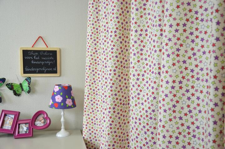 Creëer een sterrenhemel in de kinderkamer met de Estrella kindergordijnen. Met honderden kleine fonkelende sterretjes dommelt uw (klein)kind zo weg. De katoenen gordijnstof is los te bestellen of wordt gratis verwerkt tot volledig gordijn.