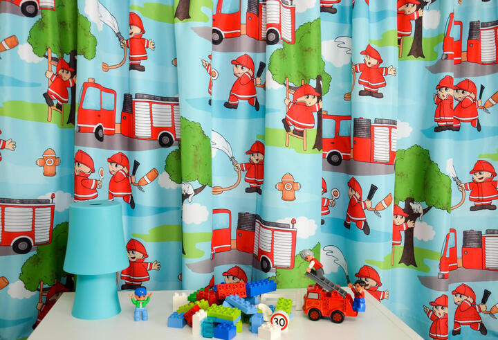 Brandweerauto's Elke jongen en meid vind het geluid en de wagen van de brandweer indrukwekkend. Met dit mooie kleurrijke kindergordijn verander je iedere kinderkamer tot een brandweerkamer. Het materiaal is gemaakt van 100% katoen en is dus uitermate geschikt voor kindergordijn. Ook kun je kiezen online of je het semi-verduisterend of helemaal verduisterend wil maken zodat je gelijk klaar bent met één gordijn.