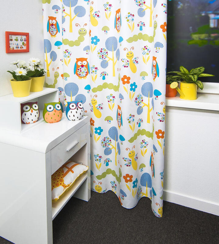 Het kindergordijn Colored Flowers is gemaakt van een fijne zachte stof met schattige printjes. Op het gordijn zijn uiltjes, rupsjes, vlinders, paddenstoelen, bloemen en bomen te zien, allemaal in vrolijke kleuren. Met een extra voeringstof wordt niet alleen de speelse sfeer behouden, maar wordt het gordijn ook functioneel verduisterend. Het beschermt tegen verkleuring, isoleert tegen zowel de warmte als het geluid, en creëert zo een kalme en rustgevende omgeving voor een goede nachtrust. Als je twijfelt over de stof, bieden we knipstaal/samples aan. Hiermee kun je de stof zien en voelen voordat je de definitieve bestelling plaatst. Als je vandaag een knipstaal/sample bestelt, zorgen we ervoor dat je deze morgen al in huis hebt. Zo kun je meteen de kwaliteit en het design van de stof ervaren.
