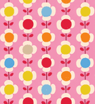 De ondergrond heeft een warme roze tint die het gordijn een zachte basis geeft. Hierop komen de bloemen mooi naar voren in frisse kleuren zoals lichtblauw, zacht groen, warm rood, oranje en beige. De witte bloemblaadjes zorgen voor contrast en houden het geheel luchtig. Door deze combinatie oogt het gordijn vriendelijk en vrolijk zonder dat het te druk wordt.