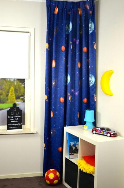 Is jouw kind een fan van ruimtevaart, sterrenkunde of droomt het ervan om astronaut te worden? Dan past dit gordijn perfect in zijn of haar kamer. Het thema spreekt tot de verbeelding: nieuwsgierige kinderen zullen steeds weer nieuwe details ontdekken in het patroon van sterren en planeten.
