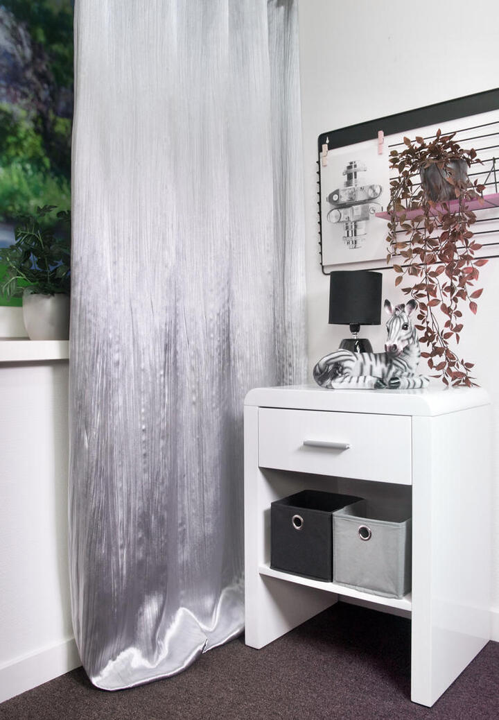 De Glare, een bijzonder en uniek verduisterend overgordijn. Deze gordijnen zijn niet alleen verduisterend, maar ook voorzien van een crush in de stof. Dit zorgt voor een uniek en speels effect, evenals een prachtige glans in het materiaal. De Glare gordijnen zijn verkrijgbaar in drie prachtige kleuren. Kies voor de tijdloze elegantie van zilver, de serene schoonheid van blauw of ga voor een gedurfde, opvallende look met de gave rode kleur. Welke kleur je ook kiest, het Gordijn Glare zal een statement maken in de kinderkamer Om ervoor te zorgen dat je de beste keuze maakt, bieden we de mogelijkheid om een knipstaal te bestellen. Op die manier kunt u de kleuren en texturen van de stof zelf ervaren voordat u een definitieve beslissing neemt. We begrijpen het belang van een tastbare ervaring bij het maken van een keuze en daarom zorgen we ervoor dat de bestelde knipstalen dezelfde dag nog per post worden verstuurd.
