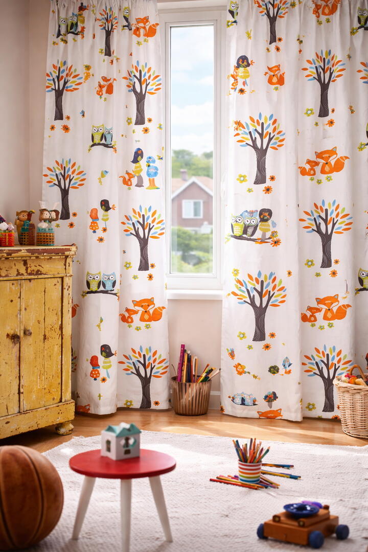De print is ontworpen om lang mee te gaan: geschikt voor pasgeborenen, maar net zo goed voor peuters, kleuters en kinderen tot ongeveer 10 jaar. De illustraties zijn vriendelijk, zacht van vorm en niet kinderachtig, waardoor het gordijn mooi meegroeit met het kind.