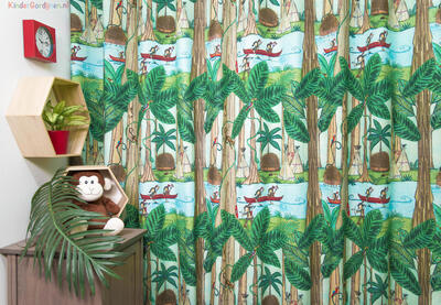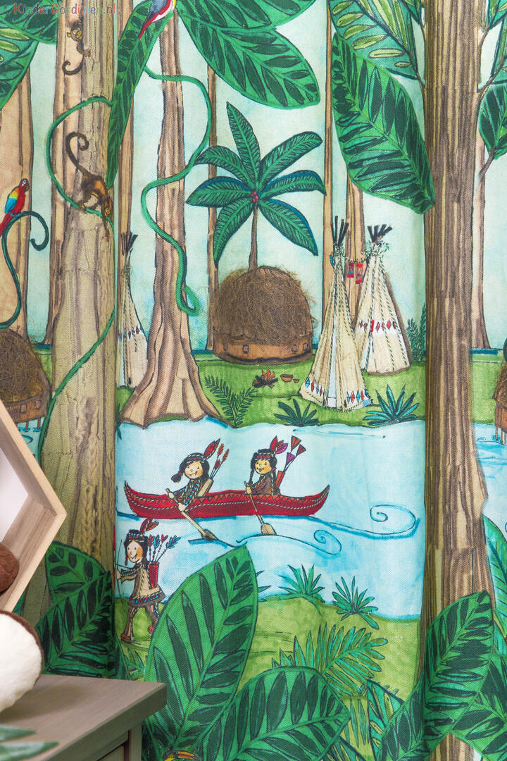 Op ontdekkingsreis in de jungle! Voor zowel jongens als meisjes is een slaapkamer met safari of jungle thema populair. Wilde dieren, bamboe, oerwoud, tipi's, lianen, aapjes, exotische vogels en indianen. Met deze gordijnen in de kinderkamer is het alsof je zo de jungle in stapt.