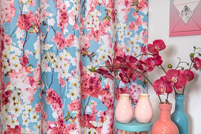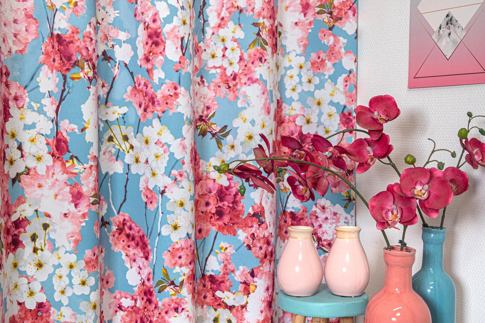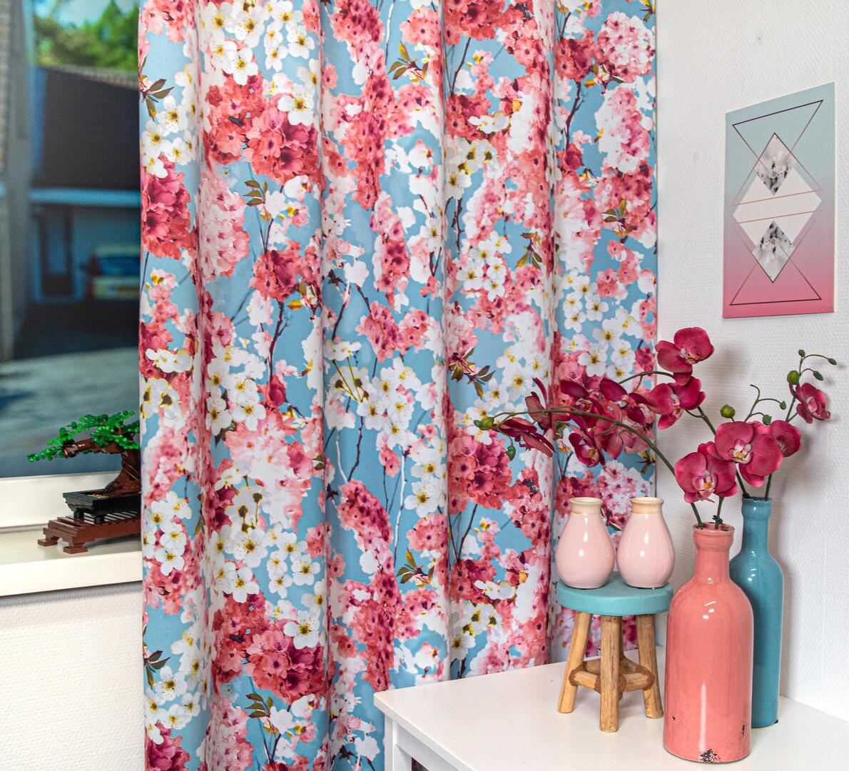 Het Gordijn Kersenbloesem laat de bekende Japanse Sakura-bomen prachtig tot leven komen. De bloemenprint is haarscherp afgebeeld, wat deze gordijnen tot een opvallend element in de kinderkamer maakt. We bieden hier drie aantrekkelijke kleurstellingen aan: sky blue, poedergroen en melon. Met onze ruime voorraad kunnen we zorgen voor een snelle levering. Deze gordijnen zijn al half verduisterend, wat betekent dat je alleen voor volledige verduistering een extra voering hoeft te kiezen, Natuurlijk biedt een extra voering ook  isolatie tegen warmte, kou en geluid, en beschermd het gordijn tegen verkleuring door zonlicht. Wil je de stof eerst zien en voelen voordat je een op maat gemaakt gordijn bestelt? Vraag dan een knipstaal aan om de textuur en kleur te beoordelen. De staaltjes worden meestal dezelfde dag nog verzonden. Bij vragen sta ik altijd voor je klaar!