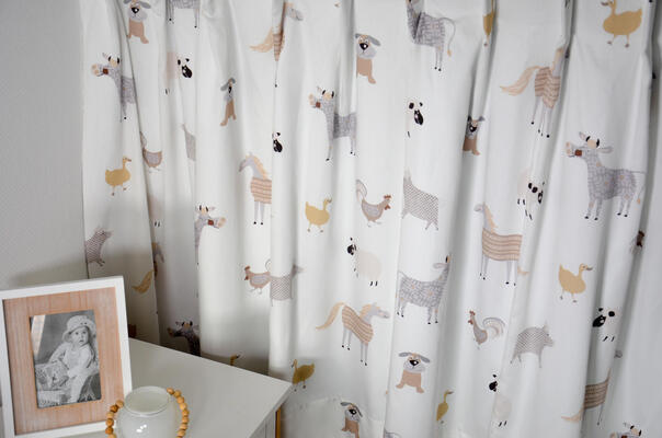 Op maat gemaakte kindergordijnen met een patroon. Leuk voor op de kinder- of babykamer. Maak uw kamer compleet met een kindergordijn.