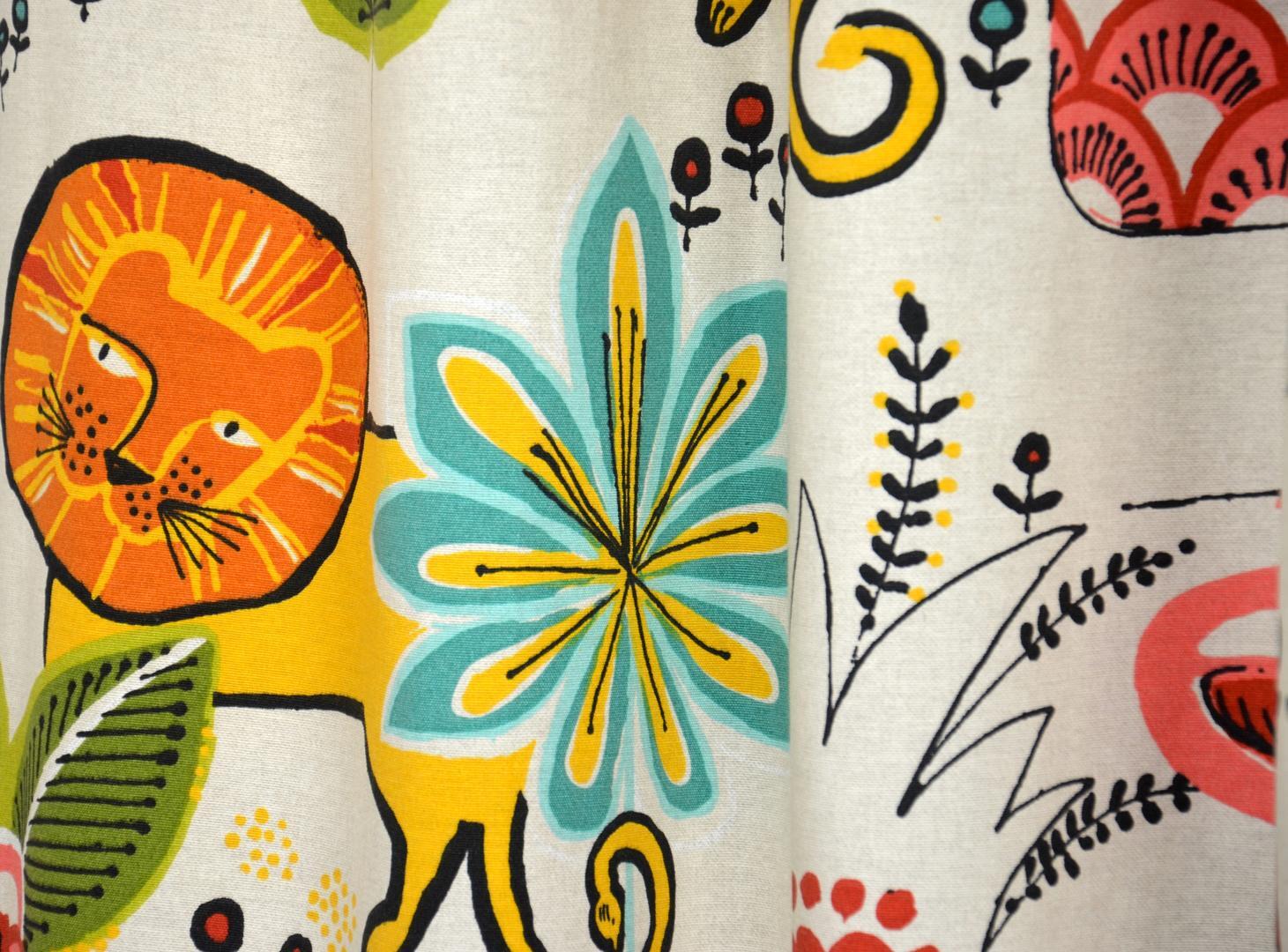 Gordijnen naar Spaans ontwerp! Dat kun je zien aan de tekening én het Zuidelijke warme kleurgebruik. De stof heeft een fraaie linnenlook als ondergrondkleur. De leeuw is maar liefst 20 x 25 cm groot en gedrukt op matte, soepelvallende katoenen stof. Doordat de stof kamerhoog is, kan deze fraai tot de grond gemaakt worden voor dezelfde prijs! Voor extra verduistering even laten voeren. Mag de Spaanse zon in jouw kamer stralen?