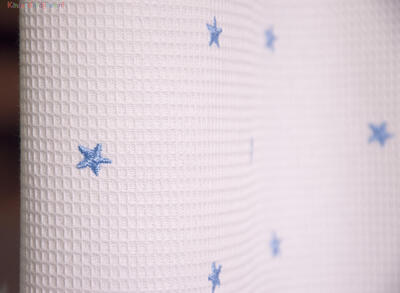 SCHATTIG! Een gordijn voor de babykamer dat rustig is en toch extra decoratief. Dat komt door de wafelpiqué structuur. Dit is een heel fijn ingeweven ribje, wat de stof optisch meer warmte geeft. In combinatie met een harde vloer (laminaat/ Novilon) geeft het daardoor een extra aantrekkelijke ‘boost’. De voor- en achterzijde hebben dezelfde kleur. Het geweven sterretje is 1 cm groot. Dit fraaie babykamer gordijn combineert vast & zeker uitstekend met jouw hemeltje/ aankleedkussen en lakentjes.