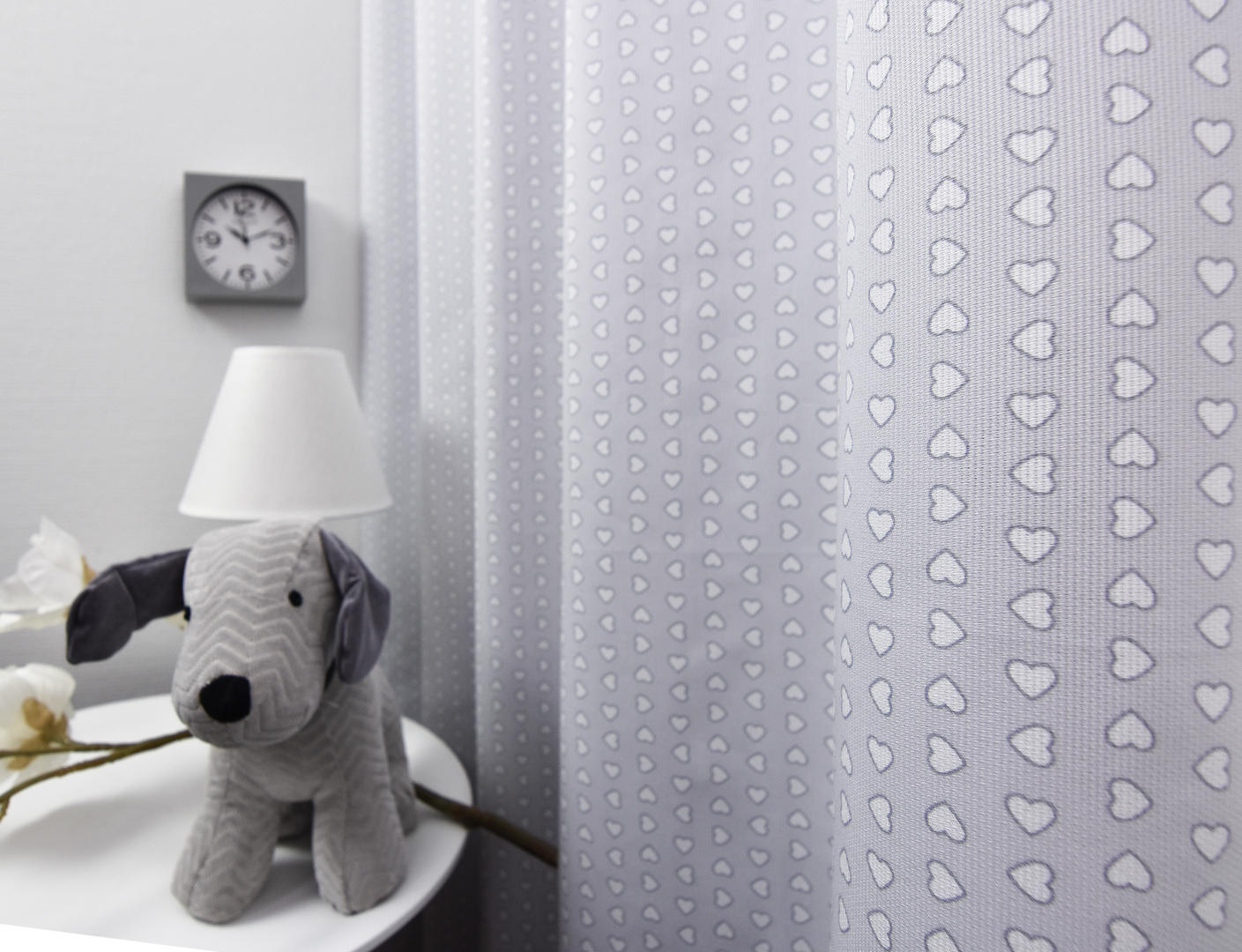Prachtige zachte gordijnstof met kleine hartjes, veelal toegepast in de babykamer.