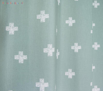 Een vrolijk speels patroon met plusjes maakt dit gordijn geschikt voor babykamers en kinderkamers. Je kunt er zowel een stoere als lieve sfeer mee creëren, dat is een kwestie van styling. Verkrijgbaar in verschillende moderne kleurstellingen. De plus is in doorsnede van punt tot punt 4 cm. Vooral de witte stof laat veel licht door. Wil je dat niet? Kies dan voor een verduisterende voering, dit kun je tijdens het bestelproces selecteren. Een voering zorgt ervoor dat de kamer in de wintermaanden lekker warm blijft en in de zomer juist koel. Bovendien dempt de voering geluid en beschermt het gordijn tegen verkleuring door zonlicht.