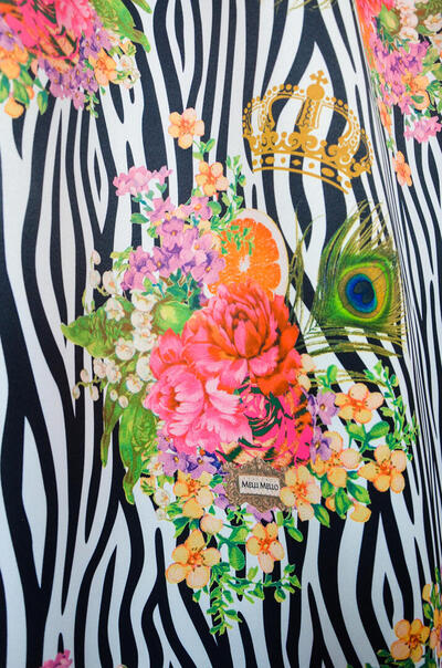 Té gek, zebraprint gordijnen van het hippe merk MELLI MELLO! Zebra is hot en daardoor super leuk te combineren met . nog méér ZEBRA! Kussens, dekbedovertrek, zwart-wit behang of misschien juist een knal-kleur? Met dit gordijn creëer jij een super eigentijdse & blitse kamer. De stof is direct dim-out, waardoor jouw kamer prettig donker wordt.. De achterzijde is gebroken wit en daardoor aardig warmtewerend. De ‘bloemenbunch’ is 25 cm in doorsnede. Zie je het al voor je in jouw kamer?