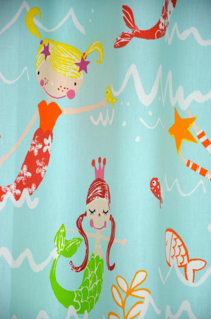 Duik in een sprookjesachtige onderwaterwereld met het meisjesgordijn Mermaid. Deze betoverende gordijnen zijn verkrijgbaar in een prachtige witte en aquablauwe kleur, en worden versierd met schattige meerminnen die als prinsesjes op de stof staan. Ze zwemmen gracieus in de zee, te midden van kleurrijke vissen en weelderige waterplanten. Hoewel de dikke katoenen stof van het Mermaid gordijn al behoorlijk wat licht tegenhoudt, raden we aan om een verduisterende voering toe te voegen. Dit heeft niet alleen voordelen zoals het voorkomen van verkleuring, maar zorgt ook voor een aanvullende isolatie in de ruimte. Bij het maken van een keuze willen we er zeker van zijn dat je tevreden bent met de stof. Daarom bieden we knipstaaltjes/samples aan, zodat je de stof zelf kunt zien en voelen voordat je een beslissing neemt. Bestel vandaag voor 15:00 uur en je hebt de samples morgen al in huis. Geef de slaapkamer van je kleine prinsesje een magische en speelse uitstraling met het Mermaid gordijn.