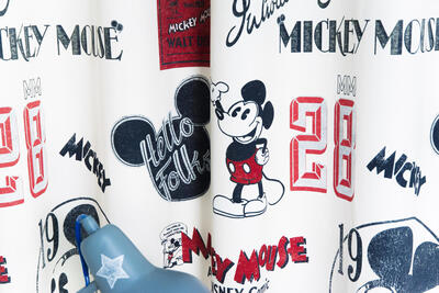 Mickey Mouse is inmiddels de 90 jaar gepasseerd, maar is nog altijd even jeugdig en vrolijk. Dit gordijn is helemaal van nu dankzij de mooie diepe retro kleuren en lettertypen. Geschikt voor een jongens- en meisjeskamer én de volwassen Disney-fan natuurlijk. De cirkel met Mickey erin is in doorsnede 16 cm, Mickey is 7 hoog.