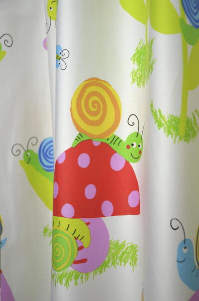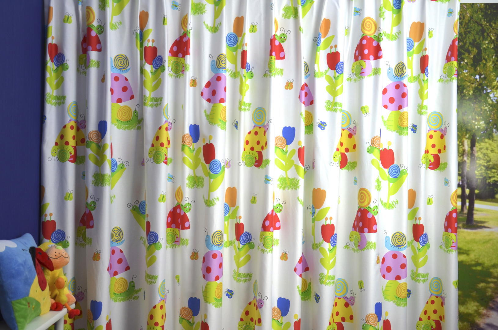 De kinderkamer verandert in een spannend sprookjesbos met deze prachtigelgekleurde slakken en paddenstoelen De kindergordijnen zijn geschikt voor de jongenskamer en de meisjeskamer. De lichte gordijnstof kunnen wij voor u voeren en verwerken tot een volledig gordijn.