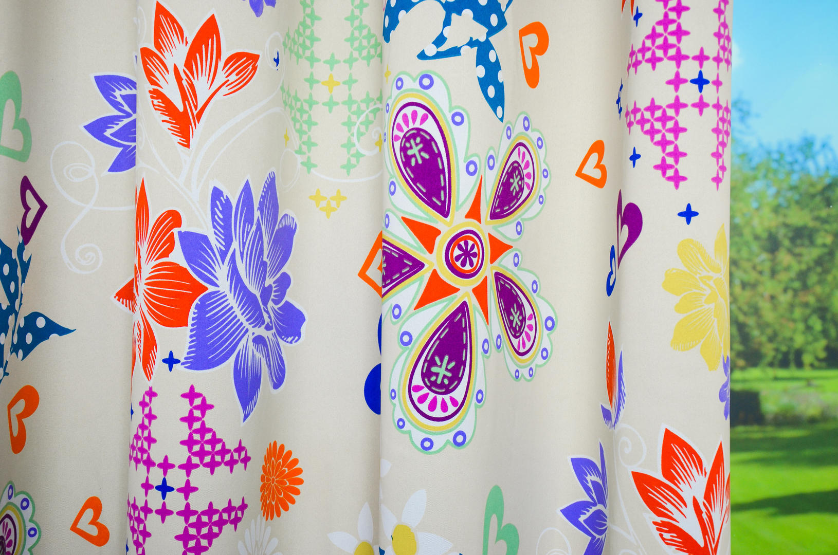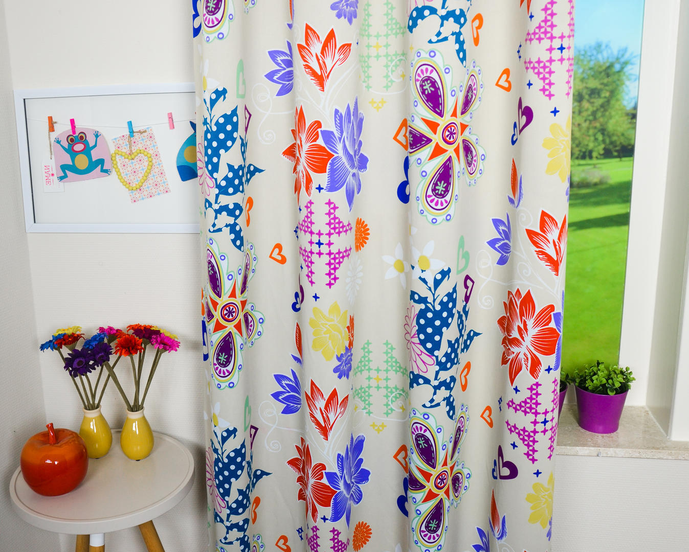 Een vrolijk gordijn, welke de kamer ook direct lekker donker maakt. Je hoeft daardoor niet te voeren om de slaapkamer te verduisteren. De vrolijke bloemenprint maakt van iedere neutrale kamer, als bij toverslag een fleurig geheel. Daarom geschikt van jong tot oud! De achterzijde is van dezelfde kleur, iets gemêleerd, net niet effen. Waardoor wel zo stijlvol. Kan dit gordijn jouw slaapkamer opvrolijken?