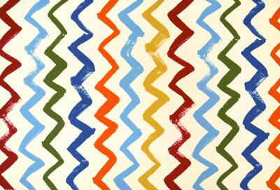 Gordijn Seismo is een speels en energiek kindergordijn dat direct leven brengt in de kamer. Het dessin bestaat uit verticale zigzaglijnen die strak van boven naar beneden lopen en samen een ritmisch patroon vormen. De afwisseling van kleuren zoals oranje, blauw, groen, geel, rood en zwart geeft het gordijn een vrolijke en levendige uitstraling die perfect past in een kinder- of speelkamer.