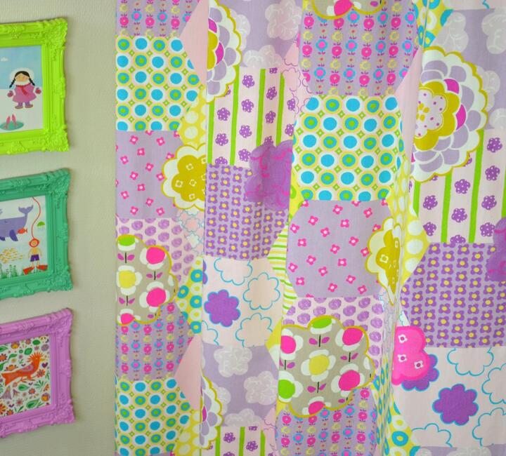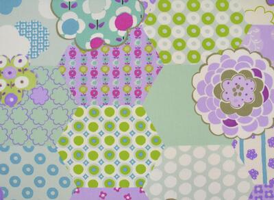 Het gordijn Parche heeft een vrolijk patchworkmotief dat bestaat uit verschillende vormen en patronen die samen een rijk en afwisselend geheel vormen. In de stof zie je grote zeshoeken en zachte bloemvormen die zijn gevuld met stippen, bloemetjes en cirkelpatronen. Elk vlak heeft zijn eigen print, waardoor het gordijn een speels en handgemaakt karakter krijgt dat perfect past in een meisjeskamer of babykamer.