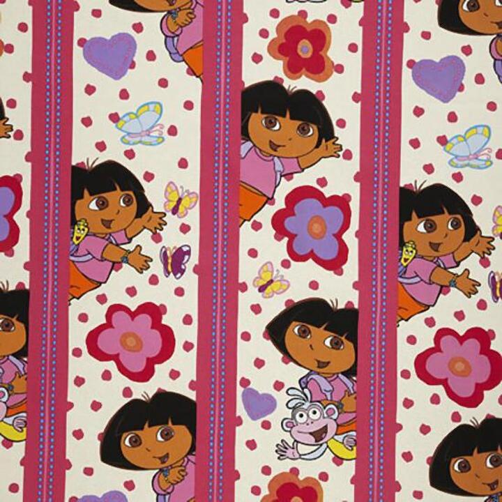 Op dit gordijn worden vrolijke plaatjes van Dora afgewisseld met kleurrijke strepen in de lengterichting. Dit gordijn past precies in de kinderkamer van avontuurlijke meisjes!