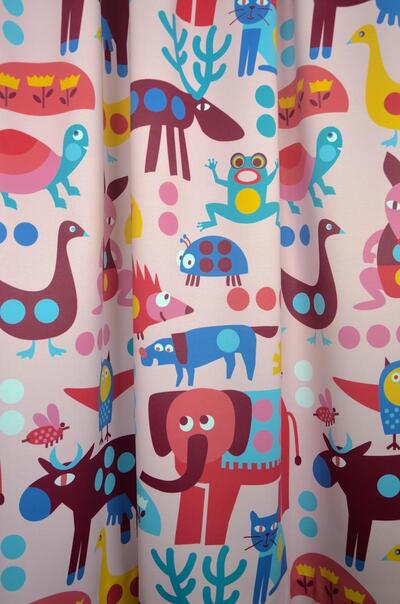 Kleurrijk kindergordijn met prachtige dierenillustraties. De gordijnstof is verkrijgbaar in drie uitvoeringen en uitermate geschikt voor scholen en kinderdagverblijven. De polyester gordijnstof is niet alleen verduisterend, maar ook brandvertragend en anti-bacterieel volgens de DIN 4102 B1 certificering.