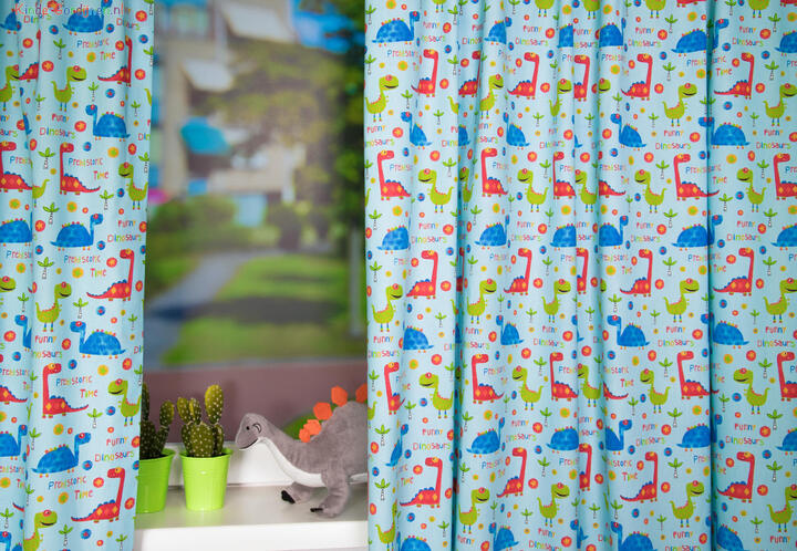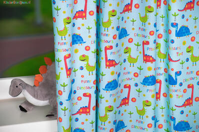 Een DINO gordijn verveeld nooit! Kijk maar naar de dinosaurusfilms en TV series. Het dier uit vervlogen tijden heeft iets magisch! De Verschillende dinosaurussen zijn gedrukt op glad geweven, matte katoen en leverbaar in 2 kleuren. De dino’s variëren van 5 tot 8 cm. Je kunt dit gordijn leuk combineren met sterrenbehang of glow-in-the-dark sterren. Ook kan je de grijs-rode variant goed combineren met zilver/ aluminium. Denk aan traanplaat behang, lekker stoer! Kortom écht iets voor de hippe vent. Voor verduistering even laten voeren.