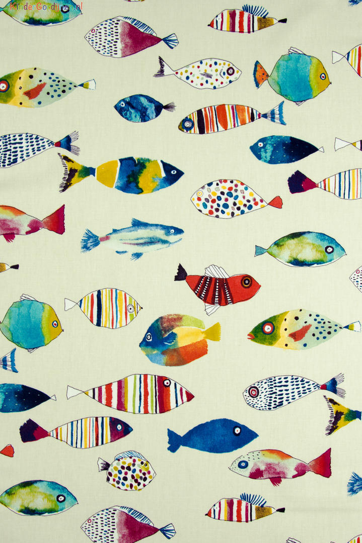 Deze gordijnstof met de naam Fishing is gemaakt van de beste materialen waardoor het gordijn mooi in de plooi valt.
