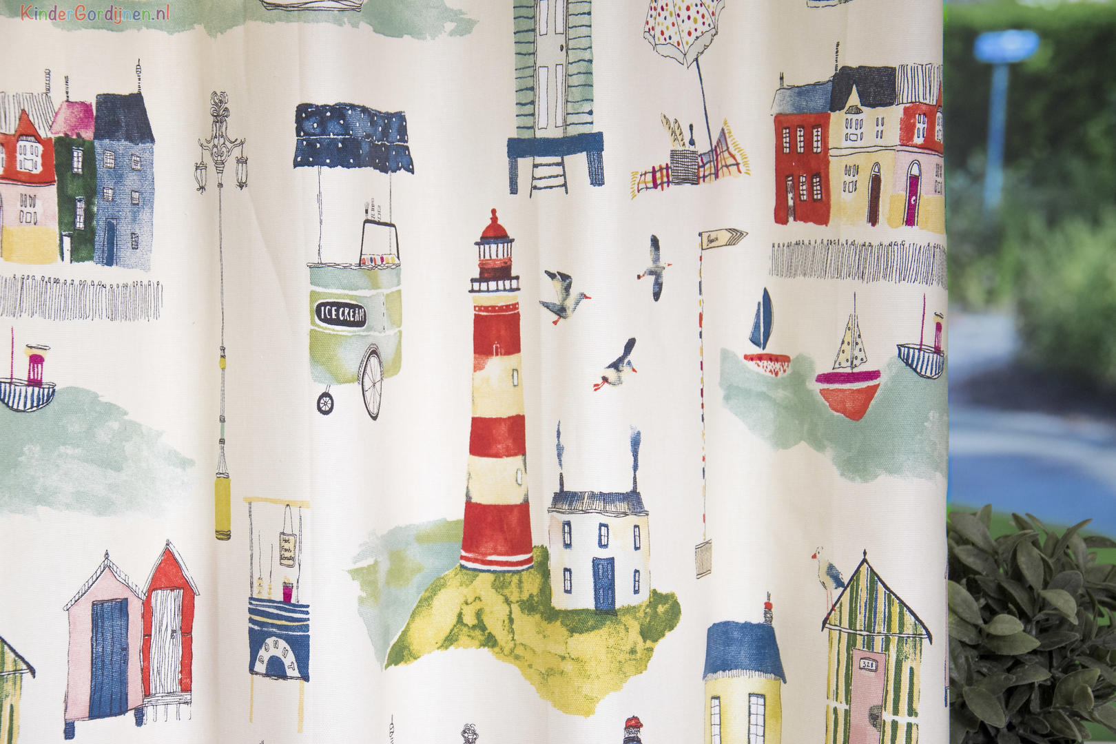 Deze gordijnstof met de naam Seaside is gemaakt van de beste materialen waardoor het gordijn mooi in de plooi valt.